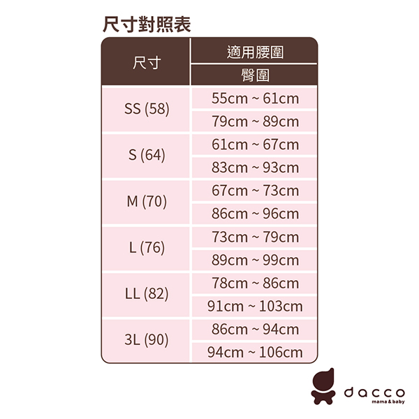3L-腰圍86cm~94cm,臀圍94cm~106cm。
